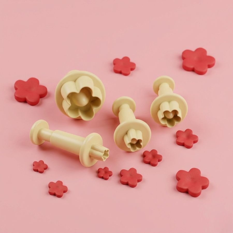 Fabricado em plástico resistente, o kit conta com 4 ejetores de tamanhos diferentes, aproximadamente 0,9 cm, 1,3 cm, 2,2 cm e 2,7 cm, oferecendo versatilidade para composições variadas e detalhadas. Seu design permite cortar e marcar as flores com facilidade, além de ejetar as peças prontas sem danificá-las. A praticidade e durabilidade do material tornam este kit uma excelente escolha para quem busca eficiência, criatividade e acabamento impecável em cada decoração.