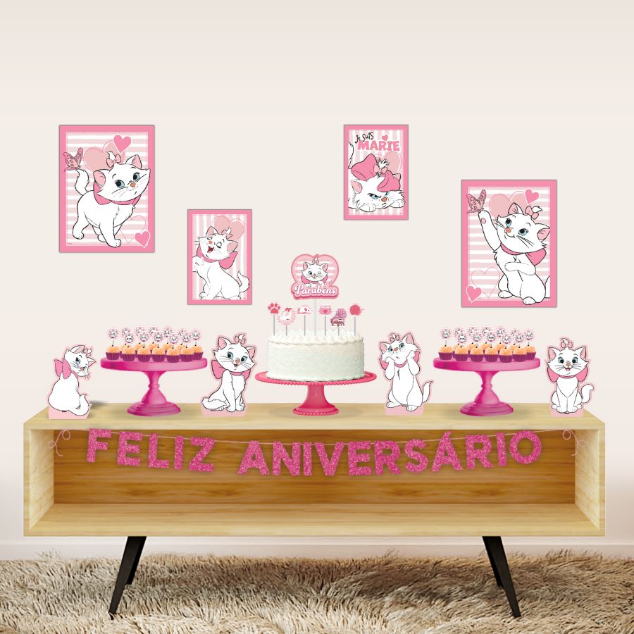 Kit Festa Fácil Gata Marie Disney é a escolha perfeita para criar uma decoração de aniversário charmosa e prática. Composto por 40 itens — incluindo 4 quadros decorativos, 1 faixa “Feliz Aniversário” em E.V.A com glitter, 7 toppers para bolo, 24 palitos decorativos para doces e 4 decorações de mesa —, todos impressos em alta resolução, garante um visual alegre e sofisticado inspirado na Gata Marie Disney.