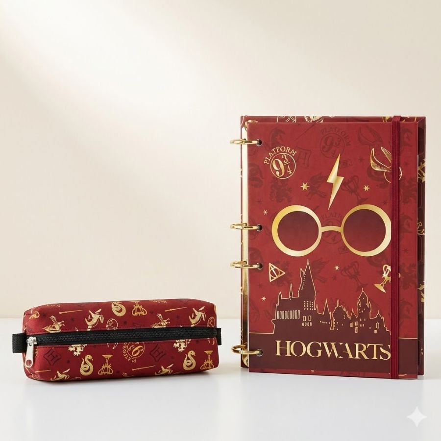 O Kit Fichário Colegial e Estojo Hogwarts Harry Potter é ideal para quem busca organização com um visual marcante inspirado no universo mágico de Harry Potter. O conjunto acompanha um Fichário Colegial Harry Potter e um estojo com elástico, formando uma solução prática para a rotina escolar, cursos ou estudos diários. O fichário permite inserir, retirar e reorganizar as folhas com facilidade, ajudando a manter o material sempre bem distribuído por matérias ou temas. O design inspirado em Hogwarts traz um toque criativo e temático que transforma o uso diário em uma experiência ainda mais especial. Item disponível na Loja Rizzo como Produto Licenciado .