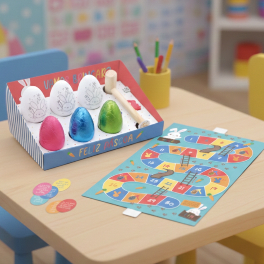 O destaque do kit são as adoráveis peças de coelhinho de plástico, representando os personagens do jogo. Cada jogador receberá um coelhinho para mover pelo tabuleiro, enquanto o dado adiciona um elemento de sorte às estratégias. Para intensificar a emoção, um martelo também está incluído, proporcionando momentos hilariantes de "quebra de ovos" durante o jogo. O Kit Jogo de Páscoa - Luke's Family é mais do que um jogo; é uma oportunidade para reunir a família e amigos, criando memórias especiais durante a celebração da Páscoa.