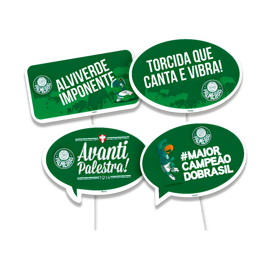 Dê um toque de diversão à sua festa palmeirense com o Kit Placas Divertidas para Festa - Palmeiras. Essas placas são perfeitas para criar momentos descontraídos e registrar memórias únicas com os amigos e familiares, tudo com o orgulho de torcer para o Verdão.