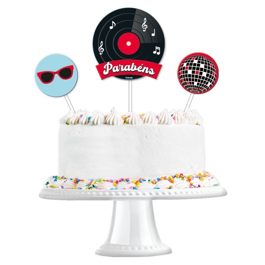 O Kit Topo de Bolo - Festa Retrô é o detalhe que transforma qualquer bolo em uma peça central divertida e cheia de estilo. Com três topos diferentes, cada um trazendo cores vibrantes e estampas inspiradas nas festas clássicas, o kit adiciona charme e personalidade à decoração, reforçando o tema retrô de maneira elegante e criativa.