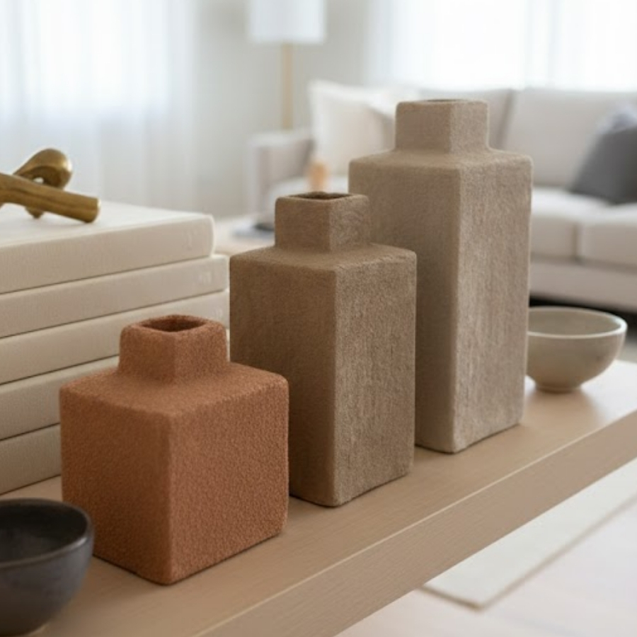 O kit de vasos decorativos em cerâmica traz charme e estilo para qualquer ambiente da casa. Composto por 3 peças retangulares, cada vaso possui textura áspera e cores neutras e sofisticadas — branco, cinza e vermelho apagado — que se complementam harmoniosamente. Seu design une estilo rústico e moderno, tornando-se perfeito para decorar mesas, prateleiras, aparadores ou jardins internos, agregando sofisticação e personalidade ao espaço.