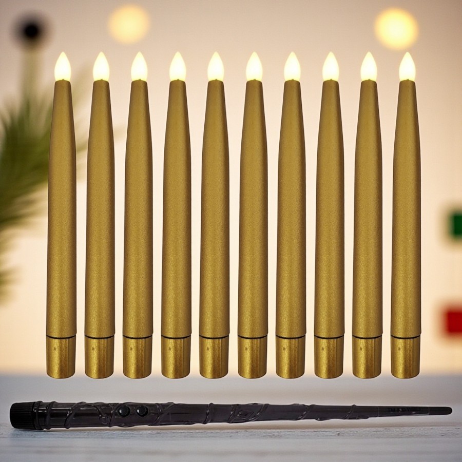 O Kit Vela Eletrônica e Varinha Harry Potter traz toda a magia do universo bruxo para sua decoração. Composto por 10 velas eletrônicas com LED e uma varinha mágica, cada peça funciona com pilhas AAA (não inclusas) e vem com acessórios para facilitar a instalação, incluindo fio de nylon e suporte para pendurar no teto, criando um efeito encantador.