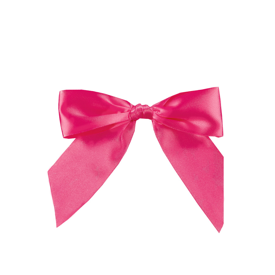 Laço Perfeito de Fita de Cetim com Lacre Prático nas pontas, na cor Rosa Chiclete, tamanho P, para fechar Ovos de Páscoa, Sacos de Presente e Garrafas.