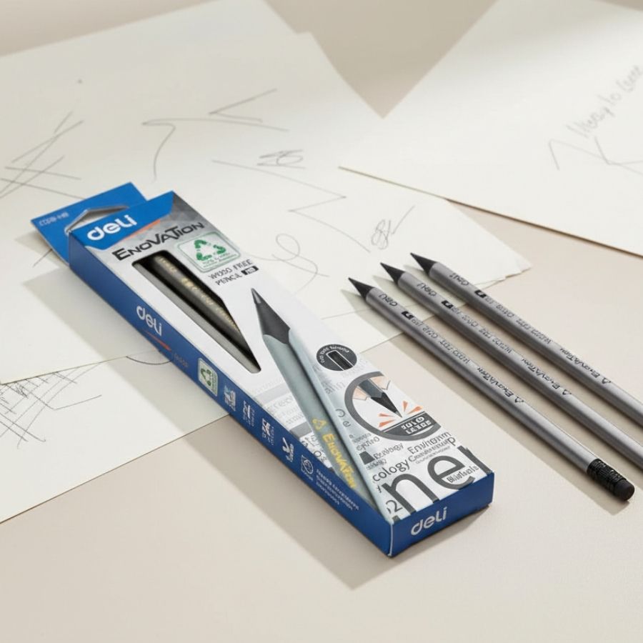 O Lápis Grafite HB Enovation Wood Free com Borracha é uma alternativa moderna ao lápis tradicional, unindo resistência, funcionalidade e compromisso ambiental. Muito conhecido também como lápis ecológico ou lápis sem madeira, oferece ótimo custo-benefício para quem busca qualidade e inovação.