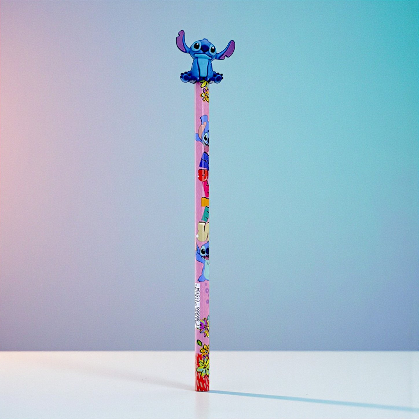 Lápis preto HB com aplique em 3D inspirado em Stitch Disney