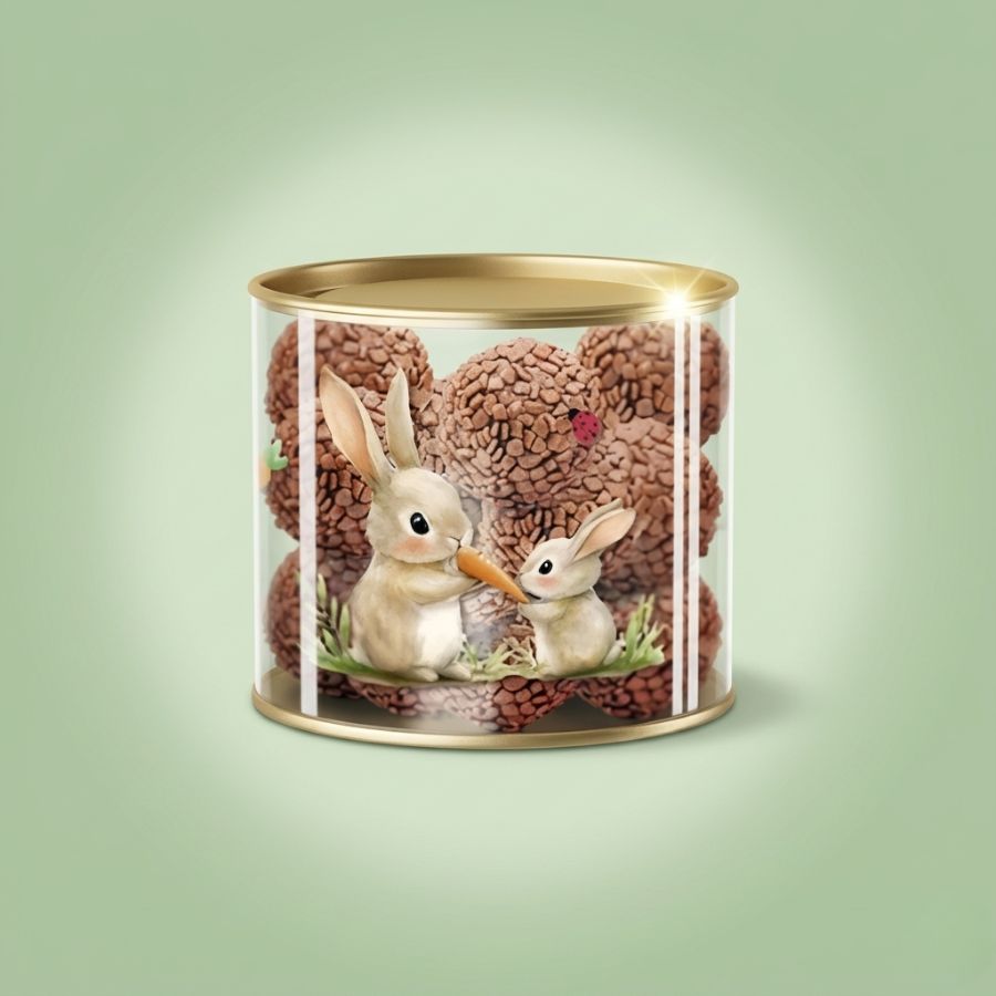 Lata Clean de Páscoa Lovely Garden transparente 7x10cm com capacidade aproximada de 50g, ideal para doces e chocolates. Perfeita para kits, presentes e lembrancinhas, com visual elegante e alta valorização do conteúdo.
