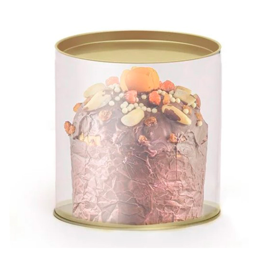 A Lata Clean Transparente com tampa e fundo dourados é ideal para datas comemorativas como Natal, Páscoa, aniversários e ações promocionais, além de vitrines e lembranças personalizadas. Espaçosa e versátil, é uma excelente opção para panetones de até 500g, doces artesanais, chocolates, bolos, presentes e cestas personalizadas, agregando valor ao produto final e proporcionando uma experiência visual elegante ao cliente.