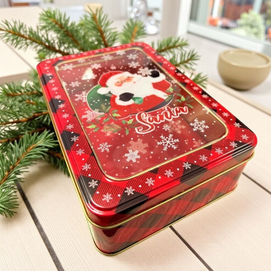 A Lata De Metal De Natal Com Visor - Santa - 19x13x5,7cm é uma embalagem encantadora e prática, ideal para armazenar doces, biscoitos, velas artesanais ou compor kits de presente natalinos. Produzida em metal resistente, possui um visor transparente na tampa que permite visualizar o conteúdo interno, unindo funcionalidade e charme. O design apresenta a figura do Santa Claus, trazendo o espírito natalino para a decoração de forma alegre e sofisticada.