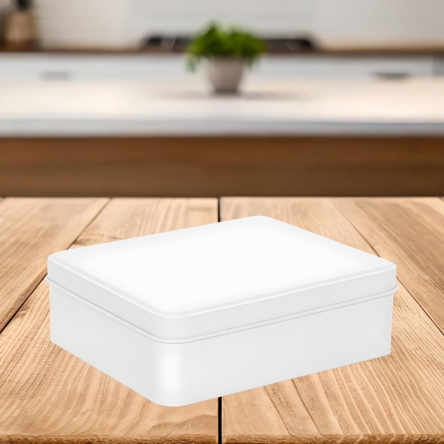 A Caixa Retangular de Metal Média - Branca - 14x10x4,5cm é utilizada para guardar e organizar diversos objetos. Seu material em metal e tamanho intermediário permitem uso funcional e decorativo em diferentes ambientes.