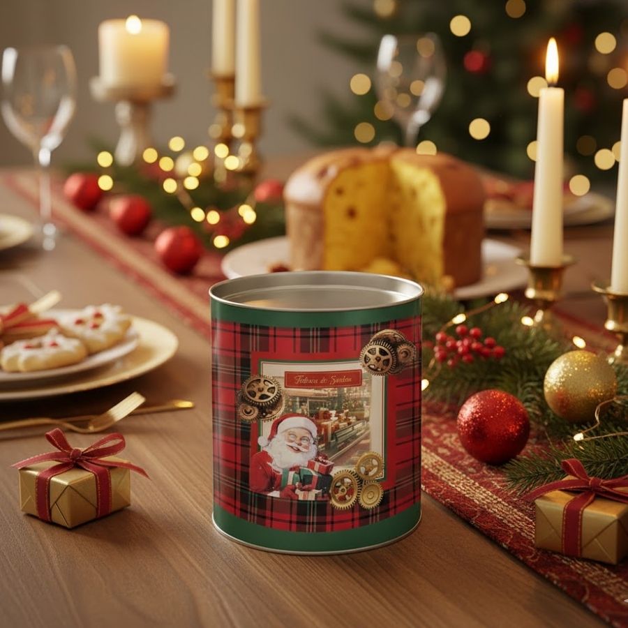Com acabamento de alta qualidade e tampa ajustada, essa lata decorativa é ideal para presentear, expor ou armazenar mini panetones e doces natalinos. Além de prática e durável, pode ser reutilizada após o uso como item decorativo ou organizador, mantendo o encanto natalino por mais tempo. Uma escolha perfeita para quem deseja unir beleza e funcionalidade nas embalagens de Natal.