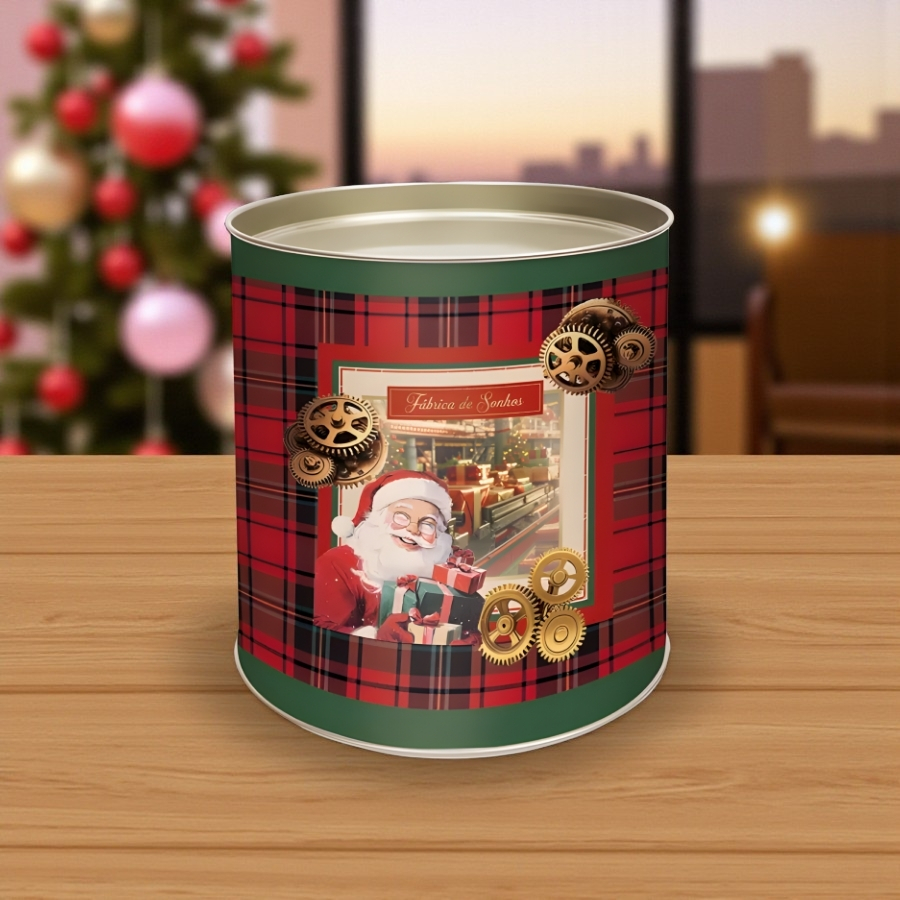 Além de ser funcional, a lata é um item decorativo que transmite todo o charme do Natal. Pode ser usada para presentear familiares, amigos ou clientes, sendo uma excelente opção para quem busca embalagens sofisticadas e duráveis, que valorizam o produto e encantam logo no primeiro olhar.