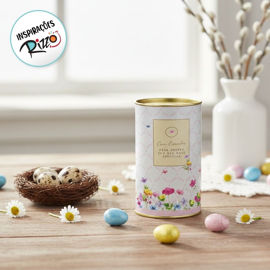 Além de funcional, a lata decorativa reutilizável agrega valor ao presente mesmo após o uso, podendo ser aproveitada para organização ou decoração. Seu tamanho é ideal para ovos de 250g, garantindo encaixe seguro e uma apresentação caprichada, sendo uma excelente opção para confeiteiros, lojistas ou para quem deseja presentear com estilo.