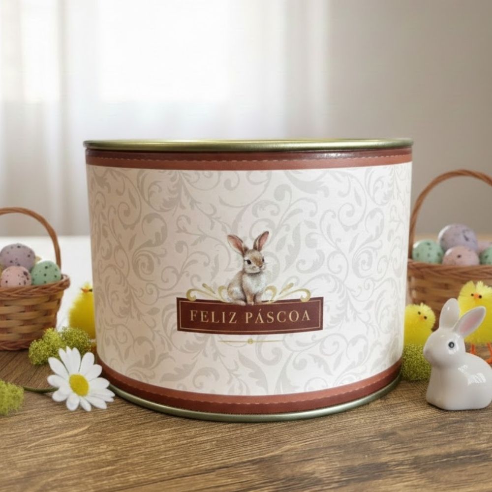 Produzida em metal rígido, a lata oferece resistência e ótimo acabamento, sendo indicada especificamente como lata para doces, já que seu formato não possui gramatura definida para ovos de Páscoa. Além de funcional, pode ser reutilizada como item organizador ou decorativo, agregando charme e elegância ao home decor e a mesas decorativas.