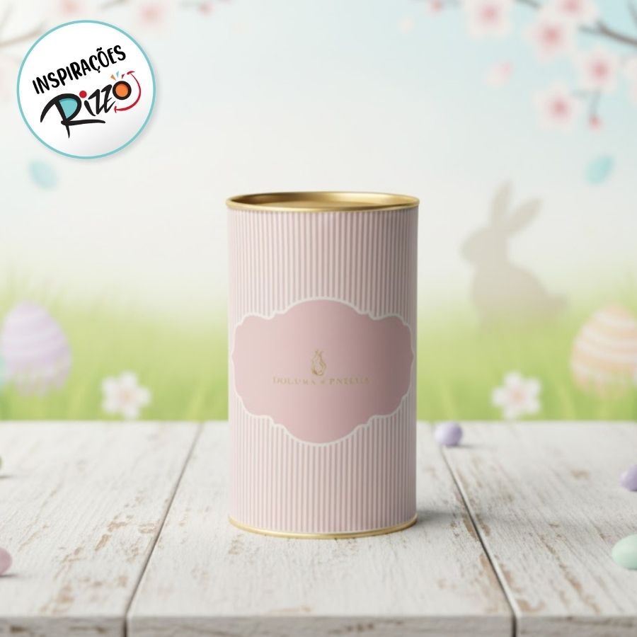 Com dimensões de 9x16,5cm, ela acomoda perfeitamente ovos de 250g, proporcionando firmeza e destaque ao chocolate. É ideal para confeiteiros, chocolaterias e presentes personalizados, além de poder ser reutilizada como peça decorativa ou organizador. A combinação entre estética delicada e durabilidade torna essa lata uma escolha perfeita para quem deseja impressiona