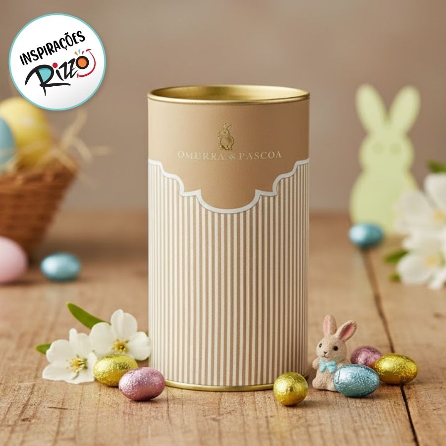 A Lata Rígida para Ovos de 350g – Amêndoa – 10x18cm é moderna, charmosa e ideal para transformar ovos artesanais em presentes especiais.