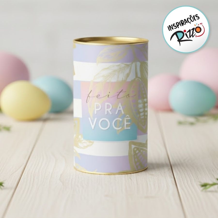A Lata Rígida para Ovos de 350g Ombre Degradê 10x18cm é resistente, moderna e perfeita para embalar ovos de Páscoa, presentes artesanais e produtos personalizados, oferecendo destaque e segurança ao conteúdo.