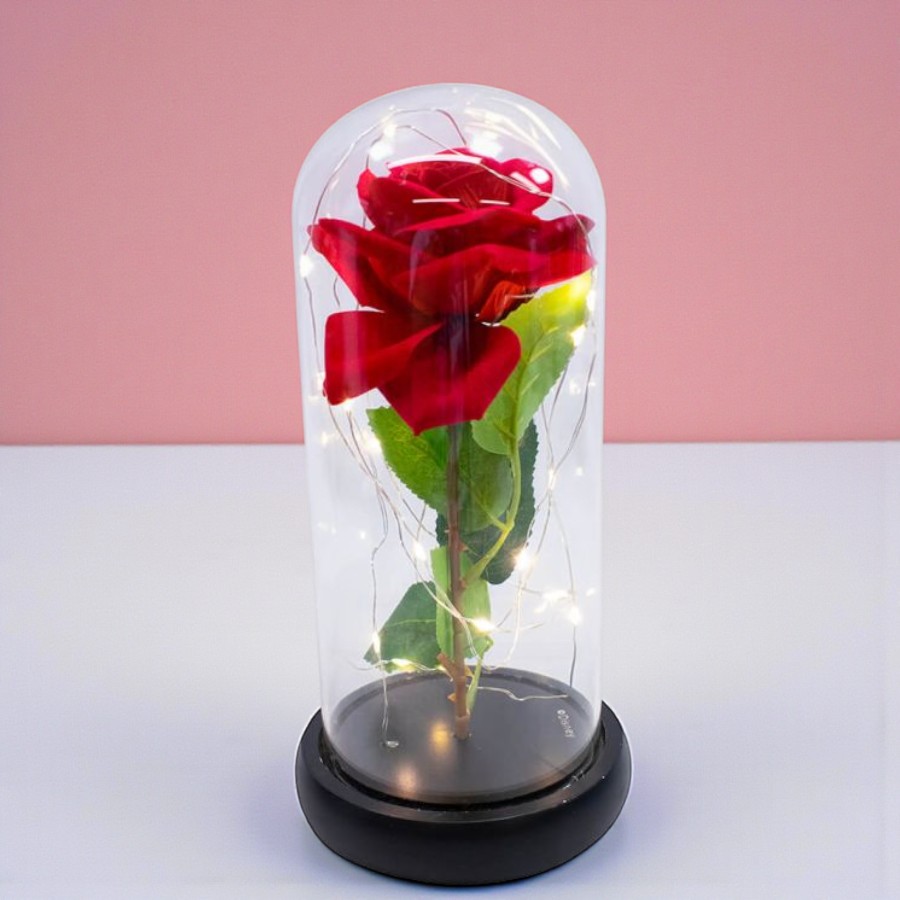 Além do apelo visual, a luminária possui funcionamento simples e funcional, acionado por botão on/off localizado na base. O uso de 3 pilhas AA permite posicionar o produto em diversos espaços, sem necessidade de fios aparentes, e as pilhas não acompanham o item. Inspirada na Rosa Disney, a peça une utilidade e beleza, funcionando como item decorativo e luminária de apoio, perfeita para presentear fãs de A Bela e a Fera Disney ou complementar coleções e composições decorativas com temática Disney Original.
