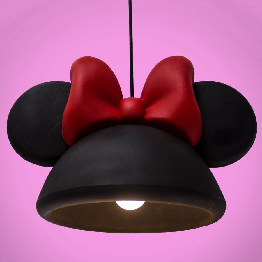 Luminária pendente inspirada em Minnie Mouse Disney com cabo e canopla pretos. Não incluso lâmpadas. 110/220V . Bivolt