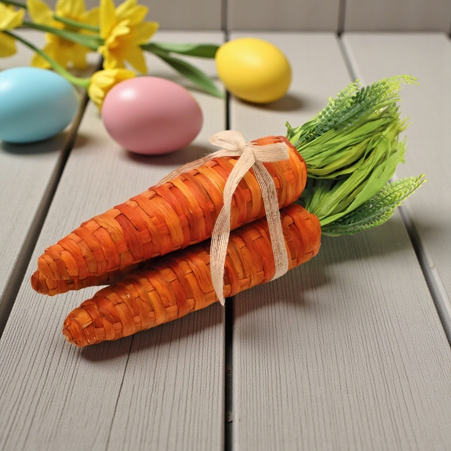O Maço com 3 Cenouras Decorativas é o toque perfeito para complementar decorações de Páscoa e ambientes com temática campestre. Com aparência natural e acabamento delicado, o conjunto adiciona um charme rústico e acolhedor à composição decorativa.