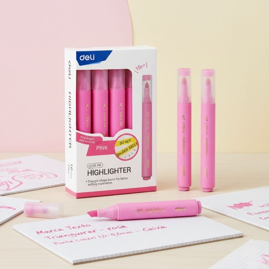 O Marca Texto Triangular Rosa possui ponta cinzel de 1,0 a 4,0mm, ideal para uso escolar, profissional e doméstico. Indicado para destacar textos, organizar informações e facilitar a leitura, oferecendo praticidade, durabilidade e um acabamento limpo em diferentes tipos de papel.