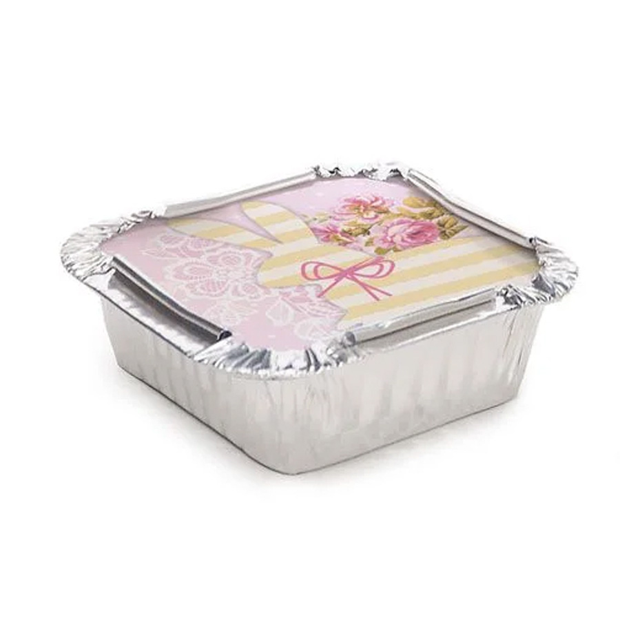 A Mini Marmitinha de Alumínio com tampa estampada, apresentando uma silhueta listrada de coelho e um fundo rosa repleto de desenhos floridos, é a escolha perfeita para adicionar um toque encantador à sua celebração. Batizada como "Marmitinha P - Floreio Páscoa", essa embalagem não apenas proporciona praticidade para armazenar pequenos doces ou lembrancinhas, mas também serve como um elemento decorativo, elevando a atmosfera festiva da Páscoa.