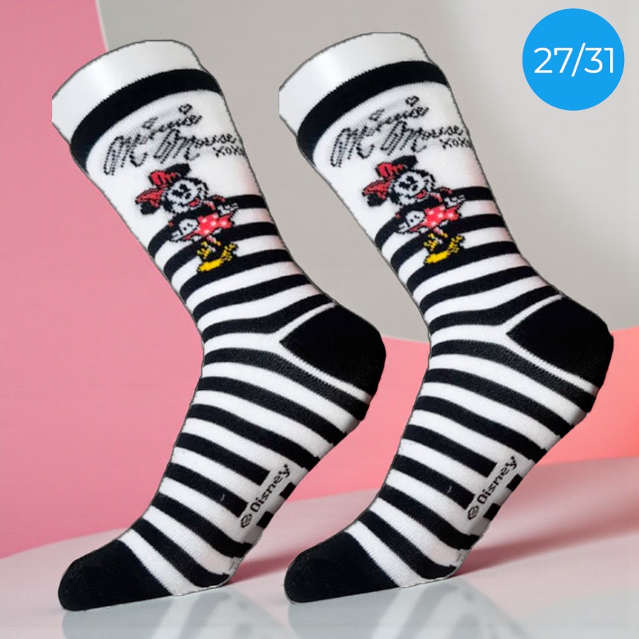 A Meia Infantil Cano Médio Minnie Mouse é inspirada na Minnie Disney e traz um visual encantador em listras preto e branco, adicionando charme aos looks infantis. Confortável e prática para o dia a dia, combina estilo e fofura em cada detalhe. Ideal para quem adora um toque divertido e cheio de personalidade.