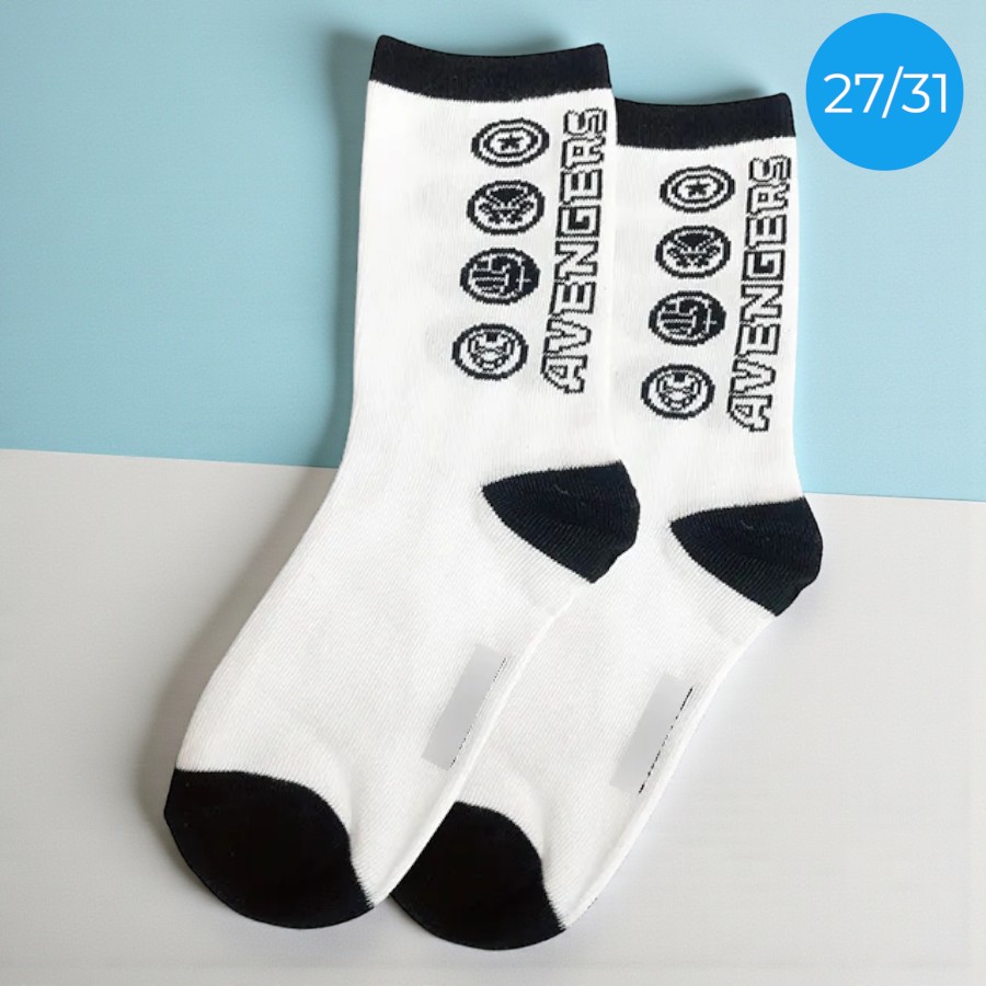 1 Par de Meias Infantil cano médio com estampa inspirada personagens Marvel. Produto licenciado.