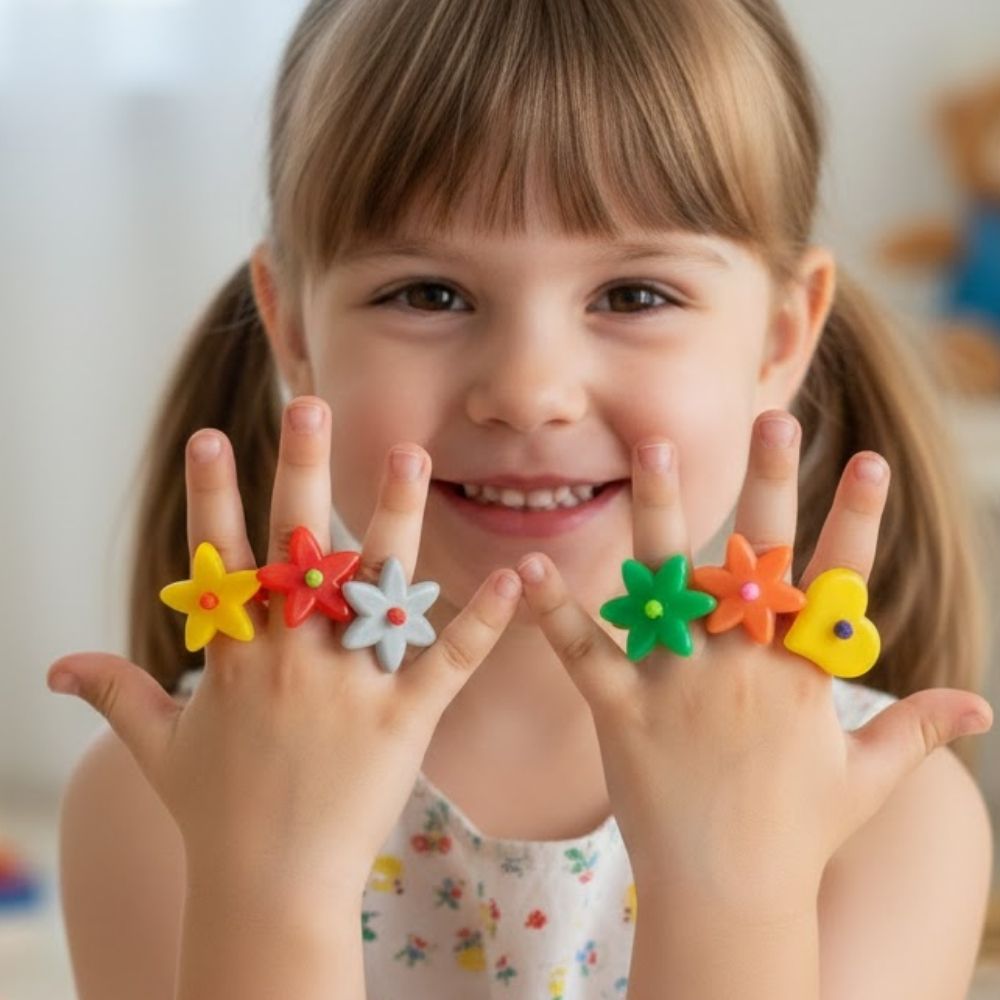 O mini anel de flor é um acessório delicado e encantador, perfeito para complementar lembrancinhas e kits infantis. Com aproximadamente 2cm, possui tamanho ideal para uso infantil, trazendo detalhes fofos como flores, corações e outros pequenos enfeites decorativos.