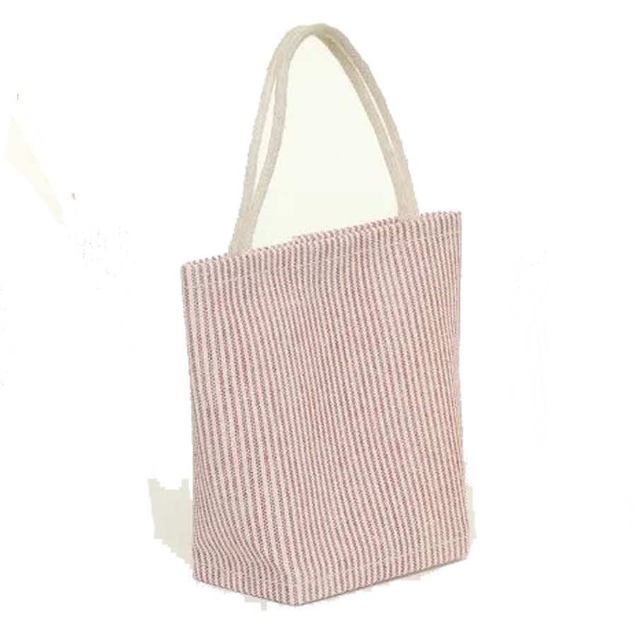 Bolsinha de tecido listrada vermelha e branco, pequena de 11 x 5 x 16cm, com fundo retangular