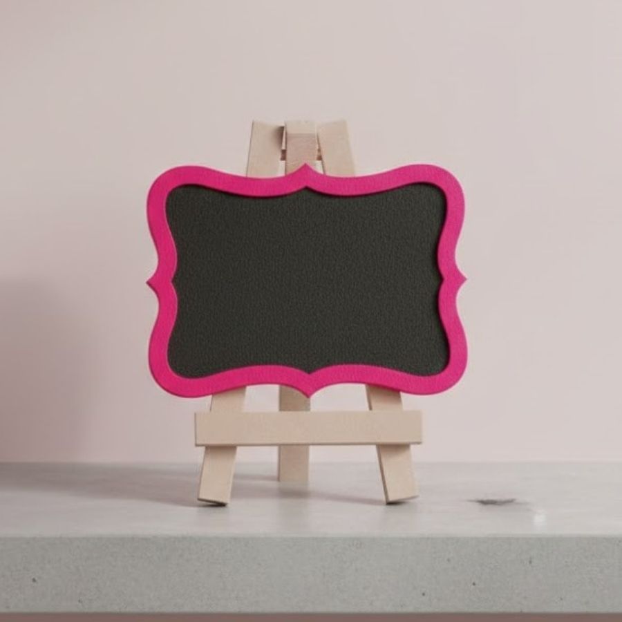 Produzida em MDF, essa mini lousa é indicada para escrita com giz ou caneta específica, sendo ideal para identificação de mesas, doces, preços, recados, frases decorativas e sinalizações. Seu tamanho de 18x12cm oferece ótima visibilidade sem ocupar muito espaço, tornando-a perfeita para festas, eventos, lojas, vitrines e decorações temáticas.