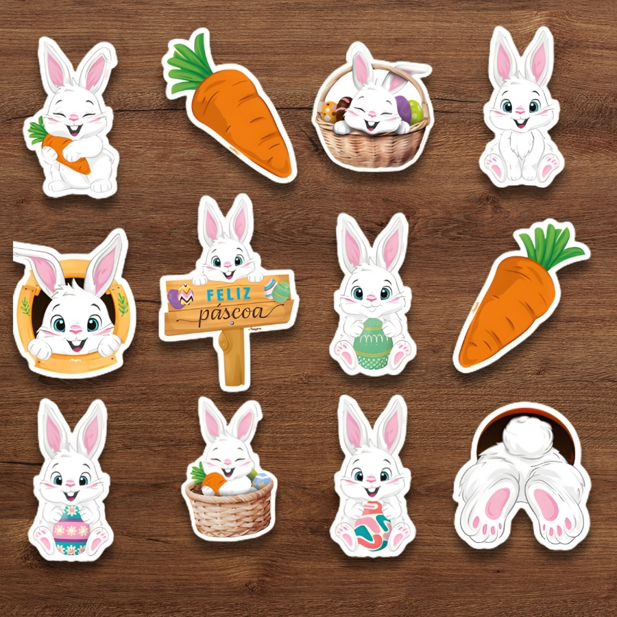 Os Mini Personagens Decorativos - Páscoa - 9cm são utilizados como elementos decorativos em composições de Páscoa. Seu tamanho facilita a aplicação em diferentes ambientes, complementando a decoração com temática pascal de forma simples e funcional.