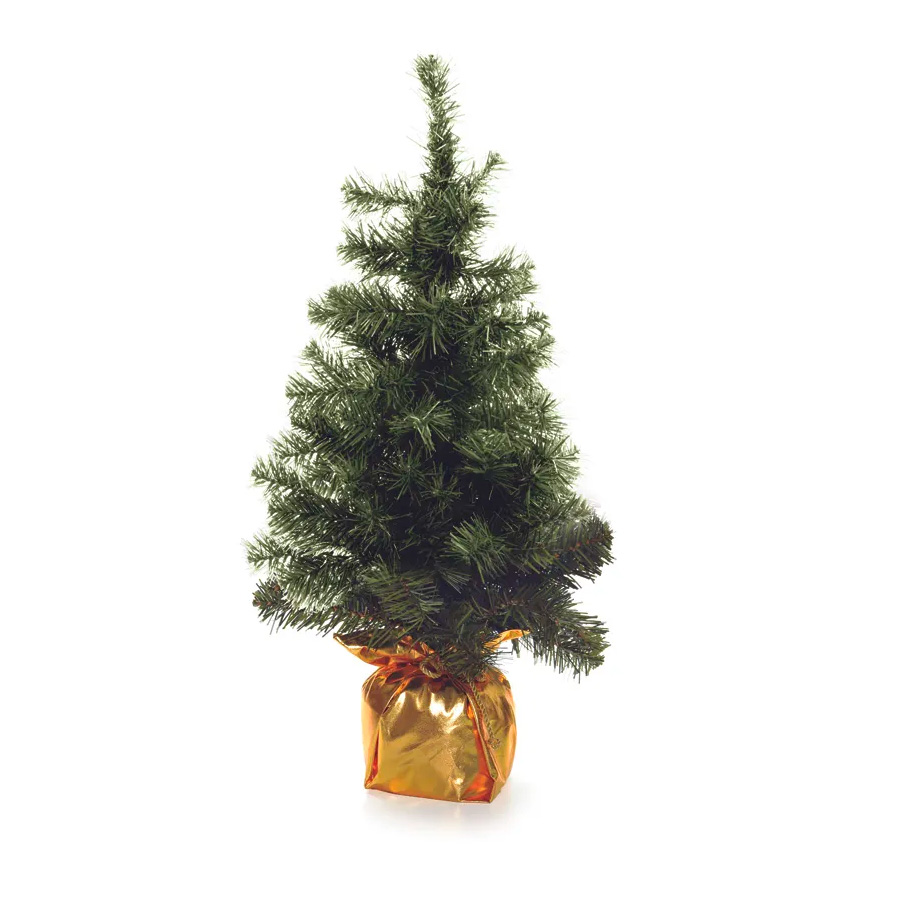 _x000D_Com seu design compacto, ele é ideal para ser colocado em mesas, prateleiras ou até mesmo em mesas de canto. A base dourada não apenas garante estabilidade, mas também acrescenta um toque de elegância, fazendo do pinheiro uma peça atraente que combina com diversas decorações natalinas.