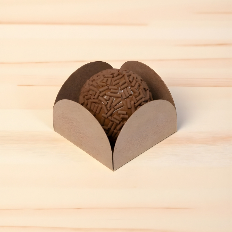 Mini porta forminha confeccionado em papel kraft de alta qualidade. Medindo 3x2,3x3cm, é indicado para acomodar doces, trufas e pequenos confeitos, garantindo uma apresentação bonita e organizada.