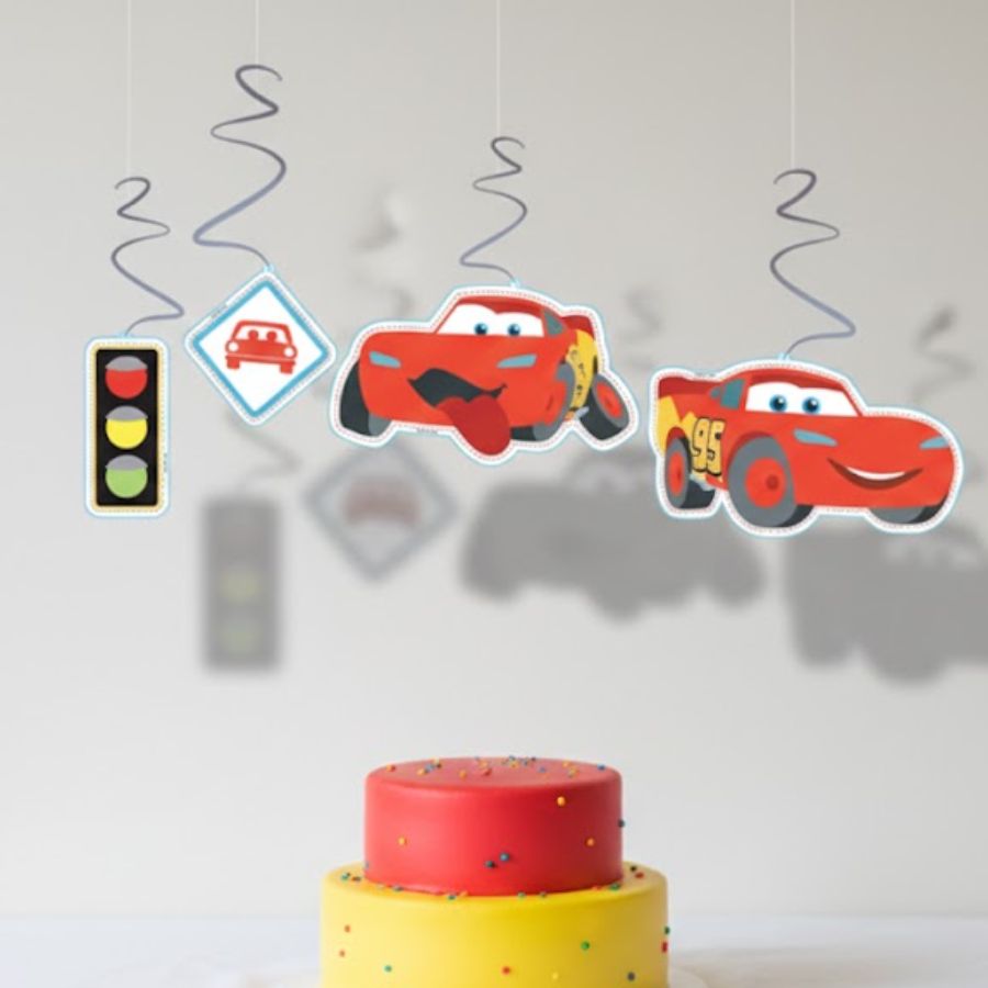 O Mobile em Espiral inspirado no Carros Disney é um elemento decorativo que traz movimento e destaque visual para a ambientação da festa. O formato em espiral cria um efeito dinâmico no espaço, enquanto as ilustrações do universo de Carros Disney completam a decoração com cores e identidade temática. Ideal para valorizar o cenário, o mobile contribui para uma composição alegre e envolvente.