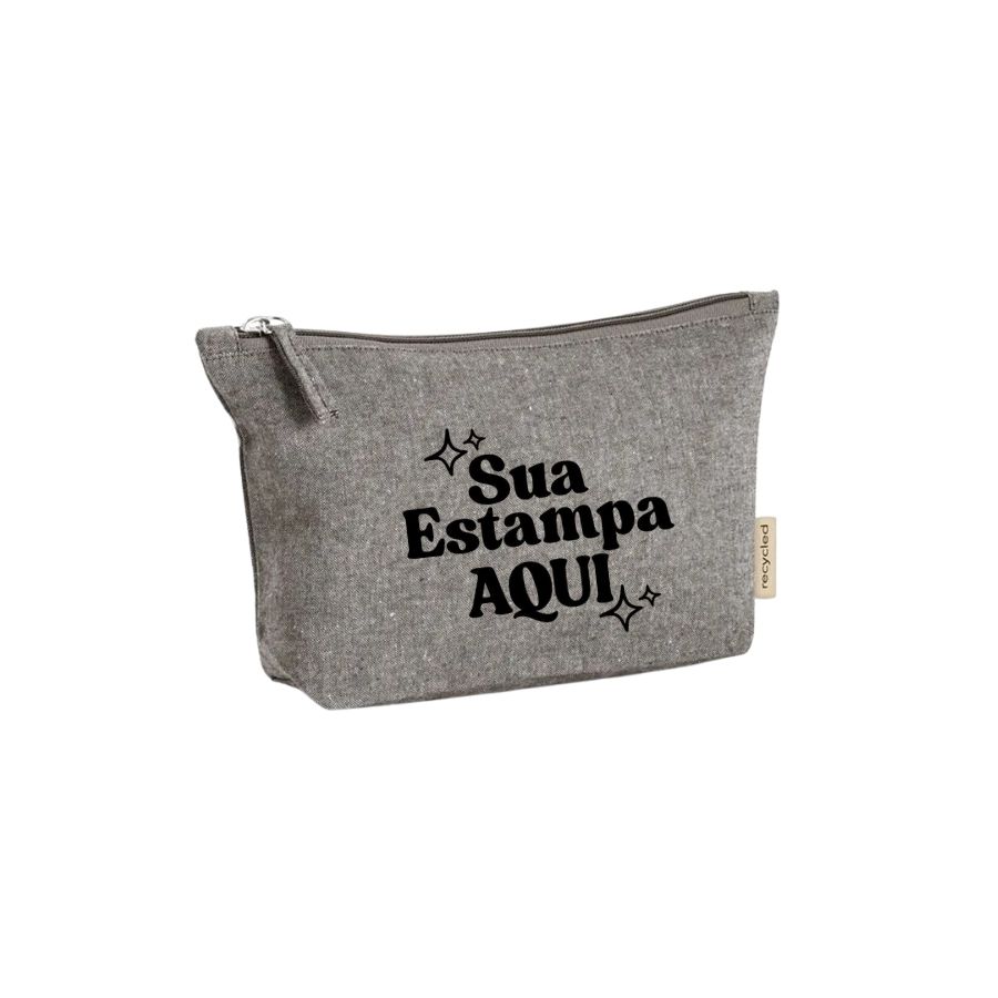 Necessaire de algodão reciclado personalizada 25x6x15cm, estampa de um lado com textura do tecido, variações na impressão possíveis, ideal para uso diário, brindes e presentes sustentáveis.