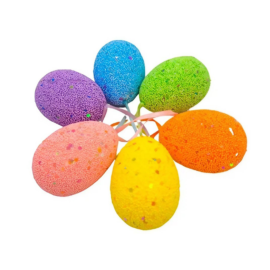 Ovos decorativos de páscoa nas cores: Amarelo, Laranja, Verde, Azul, Rosa e Roxo