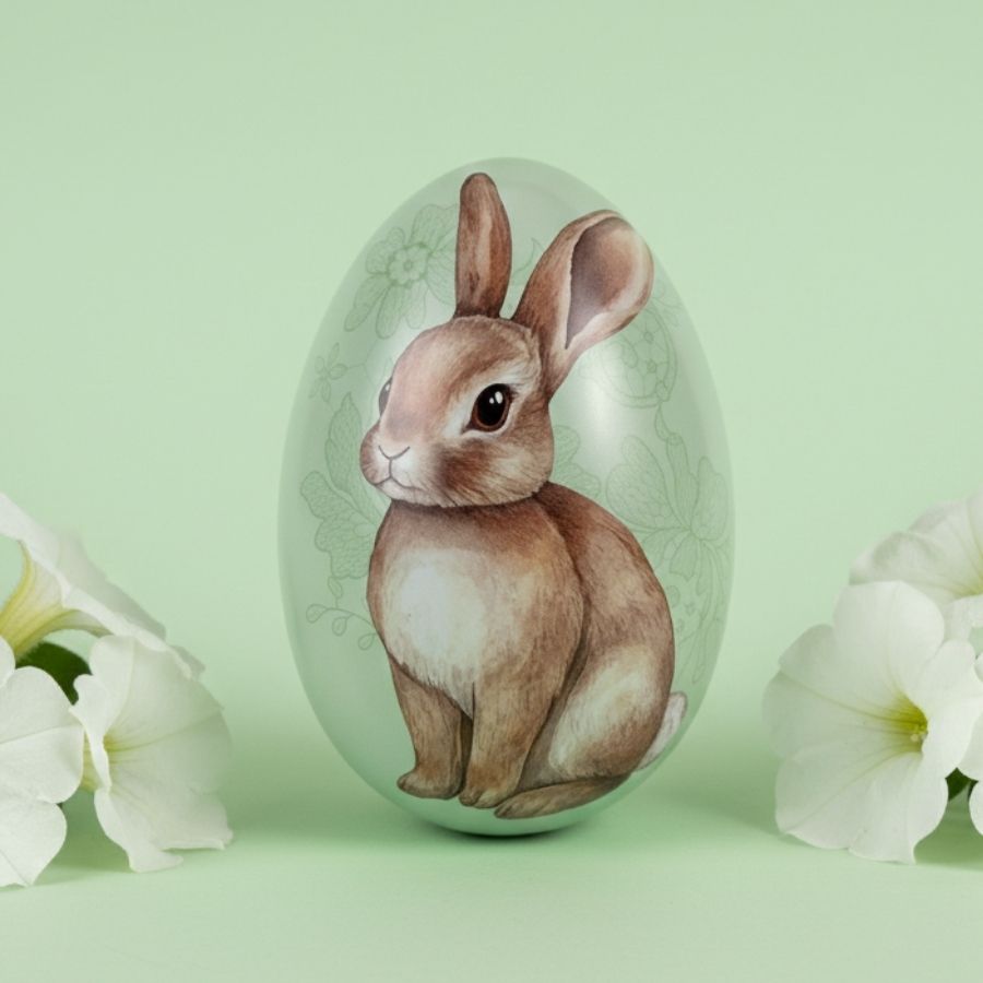 Este ovo de metal se destaca pelo acabamento refinado, pelo design floral exclusivo e pela estrutura resistente, garantindo durabilidade e excelente apresentação. Sua versatilidade permite ser utilizado como embalagem decorativa para chocolates, doces, lembrancinhas e pequenos presentes, além de compor vitrines comerciais, aparadores, cenários temáticos e centros de mesa. A estampa Coelho Flores agrega valor artesanal e estético, tornando o produto final mais atrativo, elegante e memorável para o consumidor.