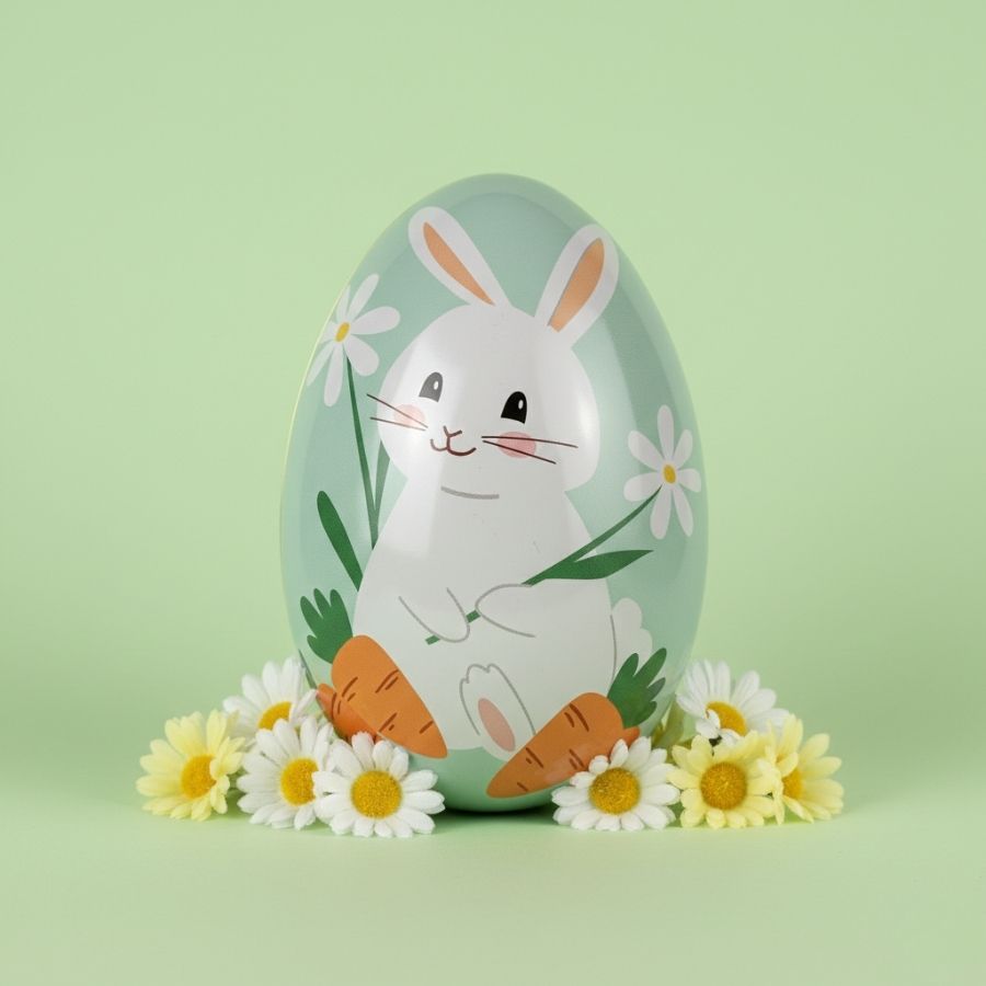 Este ovo de metal se diferencia pelo design temático detalhado, pelo acabamento refinado e pela estrutura resistente, proporcionando durabilidade e excelente apresentação. Sua versatilidade permite o uso como embalagem decorativa para chocolates, doces, lembrancinhas e pequenos presentes, além de compor cenários temáticos, vitrines comerciais, aparadores e centros de mesa. A estampa Jardim do Coelho agrega charme artesanal e valor percebido ao produto final, tornando cada composição mais atrativa, elegante e memorável para o consumidor.