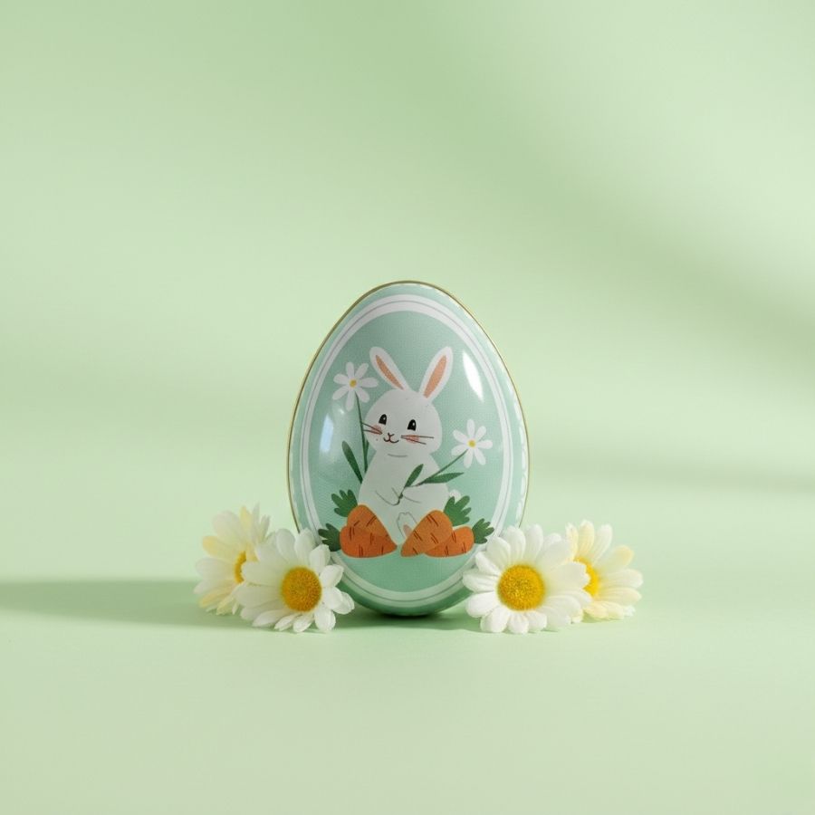 Este ovo de metal se destaca pelo design temático delicado, pelo acabamento refinado e pela estrutura resistente, garantindo durabilidade e excelente apresentação mesmo em peças de pequeno formato. Sua versatilidade permite ser utilizado como embalagem decorativa para chocolates, mini doces, lembrancinhas e brindes, além de compor cenários temáticos, vitrines comerciais, aparadores e mesas decoradas. A estampa Jardim do Coelho agrega valor artesanal e estético, tornando o produto final mais atrativo, encantador e memorável para o consumidor.
