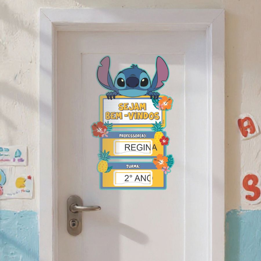 Além do apelo visual, o Painel Decorativo em EVA inspirado no Stitch Disney “Sejam Bem-Vindos” se destaca pela funcionalidade no dia a dia escolar. O modelo conta com dois espaços específicos para encaixar o nome da professora ou professor e a identificação da turma, facilitando a personalização do ambiente de forma prática e clara. Essa característica ajuda na organização das salas e na comunicação visual com alunos, responsáveis e visitantes. O tamanho compacto permite fácil aplicação em diferentes espaços, tornando a decoração versátil e adaptável a diversas propostas pedagógicas. Inspirado no Stitch Disney, o painel une decoração temática e utilidade em um único item, criando um ambiente mais convidativo. Sonhe, realize e comemore a rotina escolar com criatividade e magia Disney.