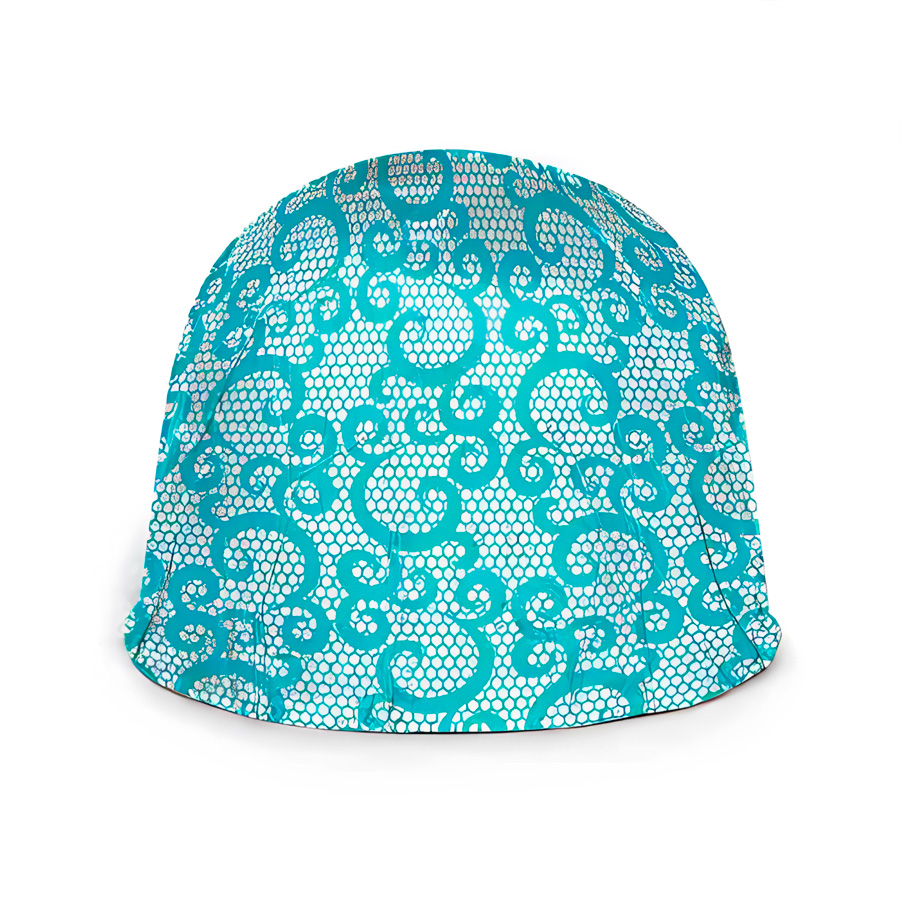 Papel chumbo estampado com fundo hexagonal branca com linhas azuis e desenhos de renda azul