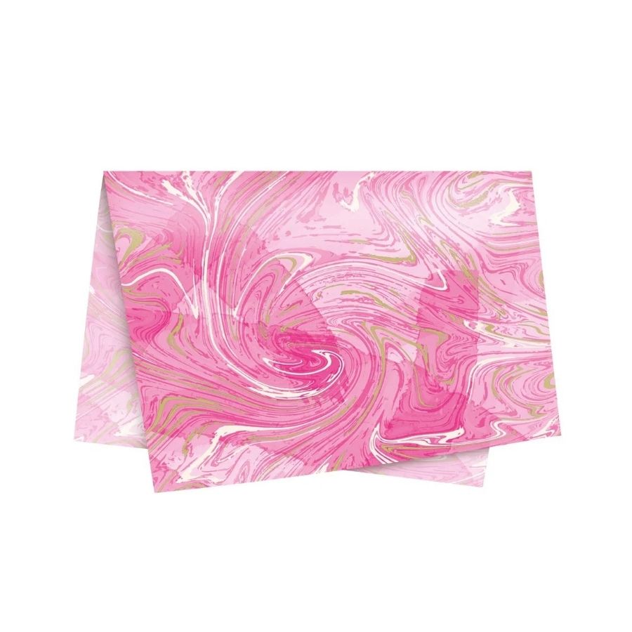 Papel de Seda Marmorizado Rosa 49x69cm, ideal para embalar e proteger produtos com elegância. Perfeito para presentes, kits e decoração, com acabamento moderno e visual sofisticado.