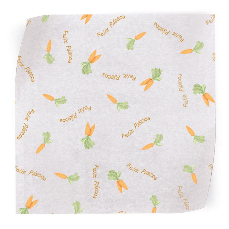 Deixe sua Páscoa mais charmosa e divertida com o Papel Manteiga Folha Cenourinha 45x70cm! Com estampa temática de cenoura em cores vibrantes, o papel manteiga é ideal para embalar biscoitos, cookies, chocolates e outros doces de Páscoa. O tamanho grande (45x70cm) permite embalar diversos tipos de guloseimas.