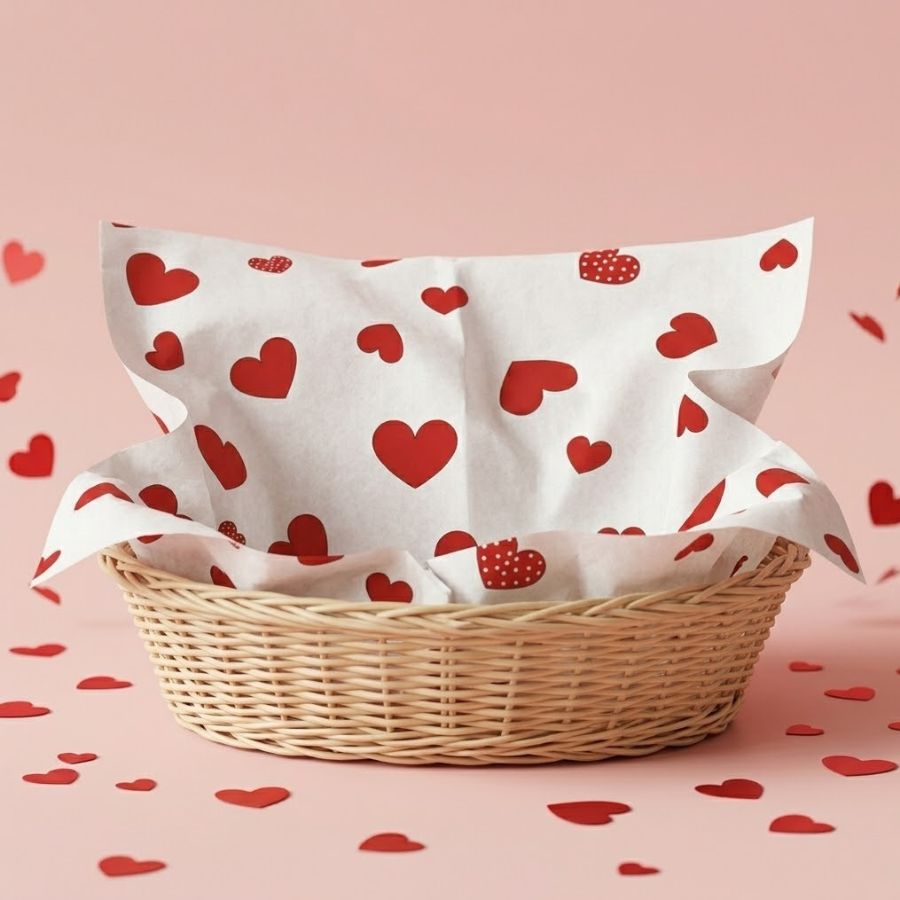 Papel de seda com estampa de coração para embrulho de presentes e embalagens