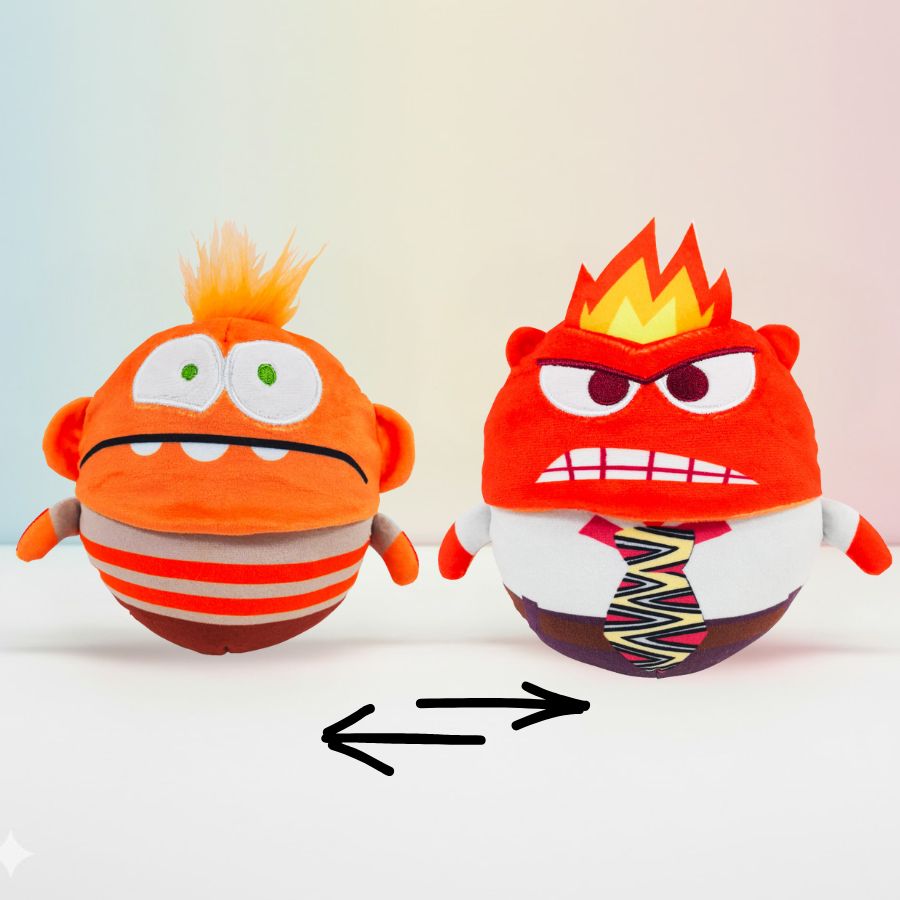 A Pelúcia Dupla Face inspirada em Raiva Disney e Ansiedade Disney, do universo Divertidamente Disney, traz uma proposta criativa e cheia de personalidade em um único produto. Com cerca de 15cm, essa pelucinha possui um design interativo que permite virar ao contrário e transformar o personagem: de um lado aparece a Raiva Disney e, ao inverter, surge a Ansiedade Disney. O visual destaca as expressões marcantes de cada emoção, com cores intensas, traços bem definidos e detalhes bordados que deixam a peça ainda mais divertida e expressiva, ideal para brincar, decorar ambientes ou compor coleções temáticas de Divertidamente Disney.