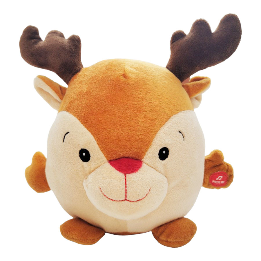 Boneco de natal em pelucia que toca musica de natal e vibra