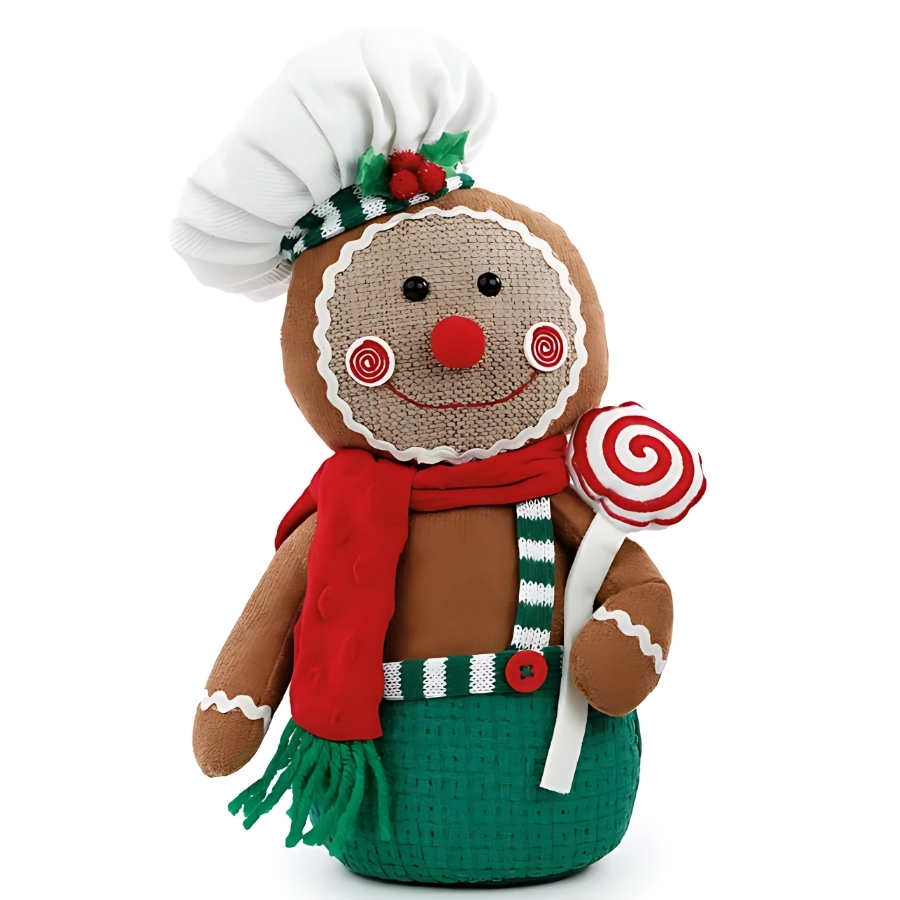 Com medidas de 34cm de altura, 20cm de largura e 10cm de profundidade, o boneco possui acabamento detalhado, estrutura resistente e tecido macio. É indicado para uso interno, especialmente como destaque em decorações temáticas, vitrines, estantes ou áreas comuns da casa durante o Natal.