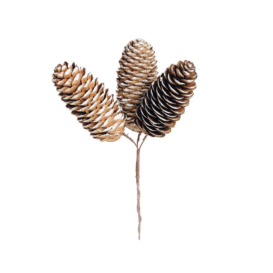 Pick Decorativo de Natal - 3 Pinhas Marrom e Branco - 15cm - 01 unidade - Cromus Natal - Rizzo